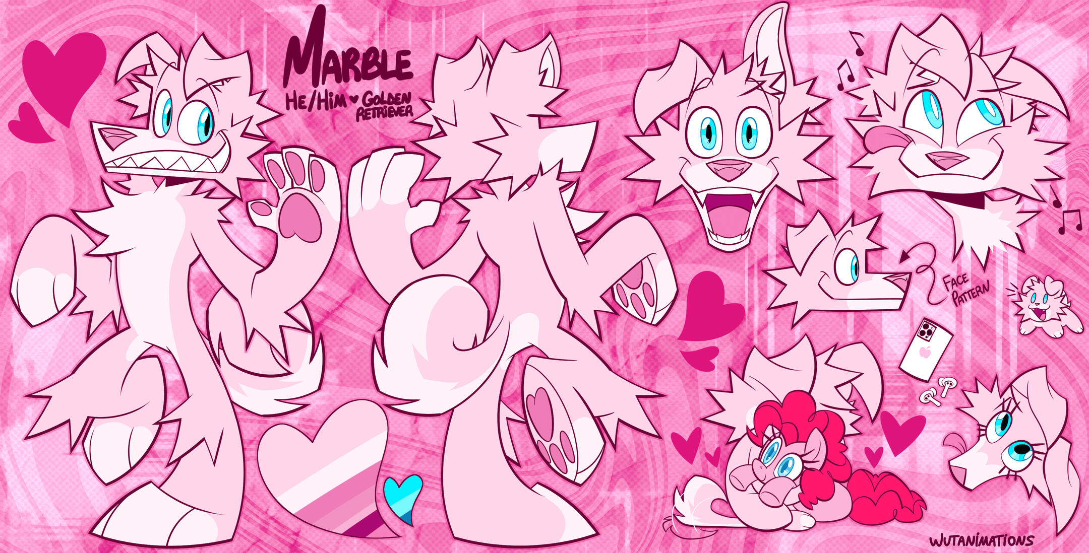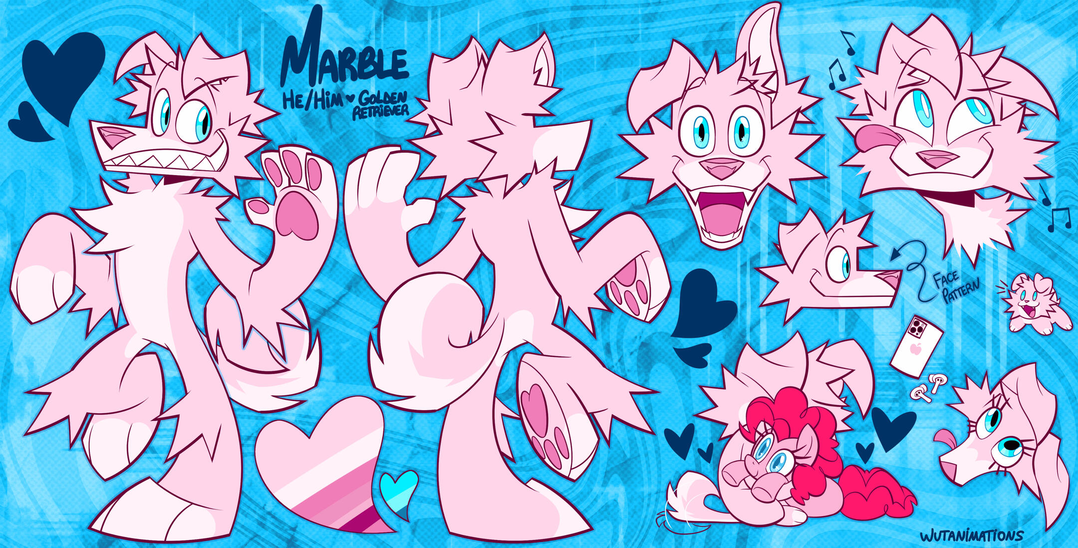 (front and back, name, pronouns, species, color bar and 2 accessories)